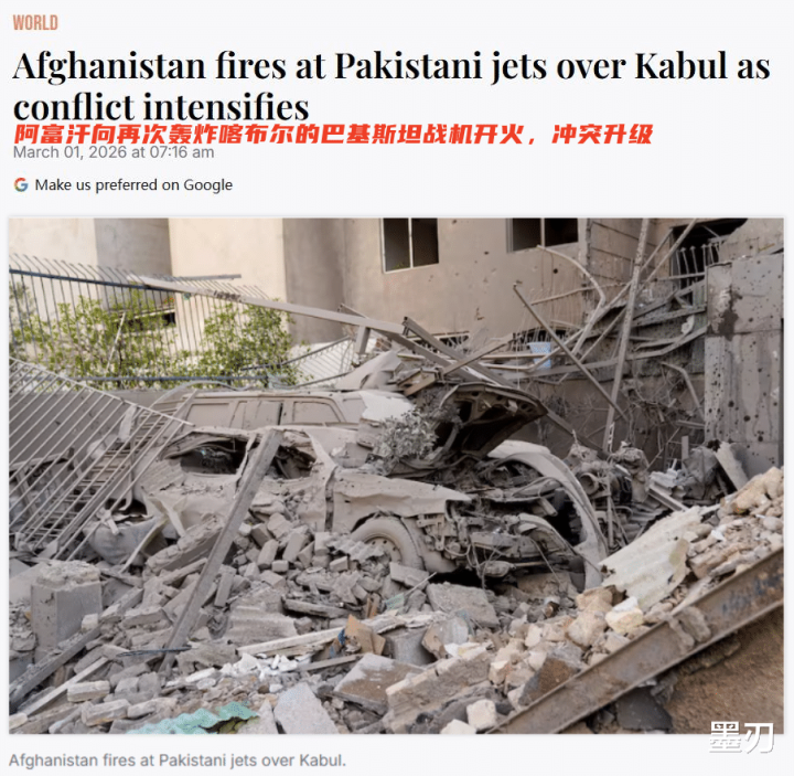 2月下旬,巴基斯坦率先对阿富汗喀布尔、坎大哈等核心城市发动空袭,这是巴方首次直接针对阿富汗现政府设施动手,打破了此前仅针对武装分子的惯例。作为报复,阿富汗塔利班于2月27日发动了跨境袭击,他们袭击了巴方边境军事阵地,随后双方陷入到了“空袭-反击”的恶性循环。截至3月1日,冲突已进入第九天,战火蔓延至帕克蒂卡、霍斯特等多个边境省份,甚至波及喀布尔市中心。