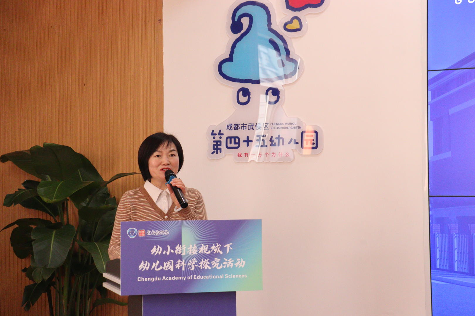 1月9日,成都市教育科学研究院主办、武侯区教育科学发展研究院和武侯区第四十五幼儿园承办的“幼小衔接视域下幼儿科学探究活动的专题教研”在武侯区第四十五幼儿园开展,成都市各区县教研员参会和武侯区部分幼儿园教师代表参加。
